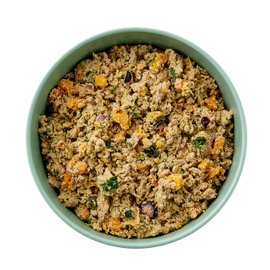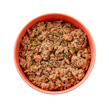 Short answer: with a whole lotta love. Longer answer: We started by working with a veterinary nutritionist who helped us formulate our balanced and complete, human-grade recipes, abiding by the AAFCO standards. Then we carefully sourced our ingredients (more on this below!), cook them at low temperatures in small batches at our facility in Minnesota, and hand-pack them. We personally know the people who are making the food—and our dogs can attest to how delicious it is.